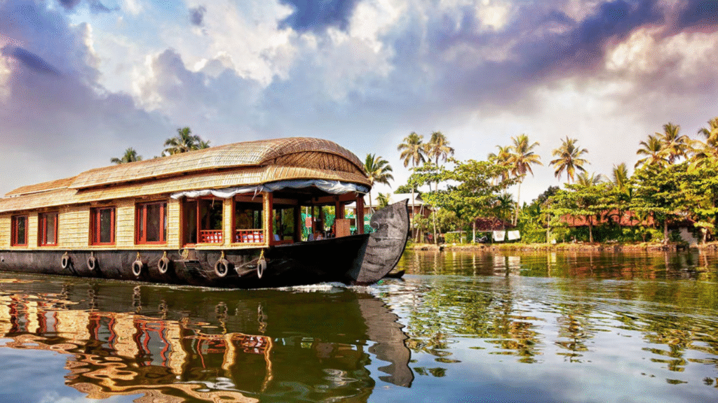 • Cruise through the serene backwaters of Alleppey on a traditional houseboat